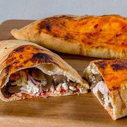 Pomodoro san marzano, mozzarella fior di latte, prosciutto cotto, funghi porcini, carciofi e olive nere