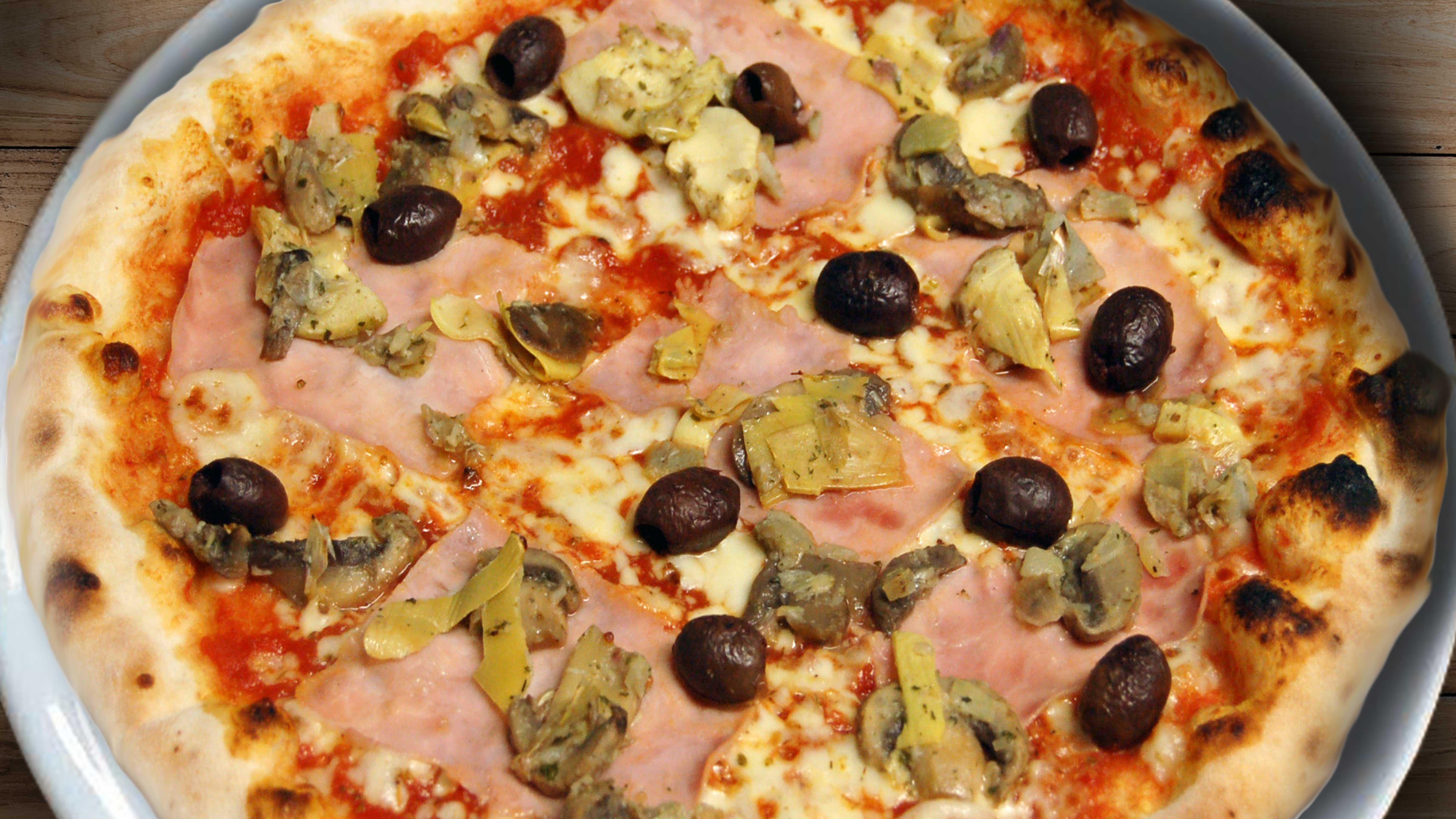 Pomodoro san marzano, mozzarella fior di latte, prosciutto cotto, fungi porcini, carciofi