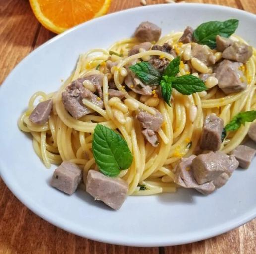 Linguine con Spada, Gamberi e pomodorini 12€